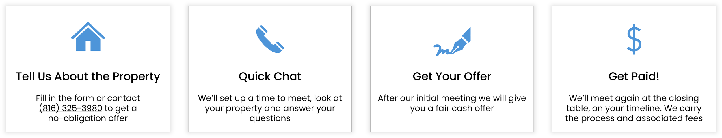 As simple as it sounds- we provide a quick, stress-free cash offer to get you to your next step